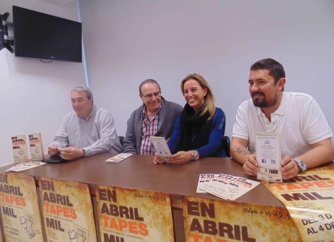 Nuria Felip, regidora de Comercio en el Ayuntamiento de Almassora, ha presentado esta mañana los trípticos del itinerario gastronómico acompañada por el patrocinador de la ruta, Ramón Queral, 'Mon', el organizador de la cita, Félix Tejeda, además de Fernando Gil, representante de Quesos de Almassora. “Desde la semana que viene y hasta el 4 de mayo, la Ruta de la Tapa i el Vi nos permitirá saborear los mejores bocados en los establecimientos adheridos a la convocatoria”, ha comentado la edil.