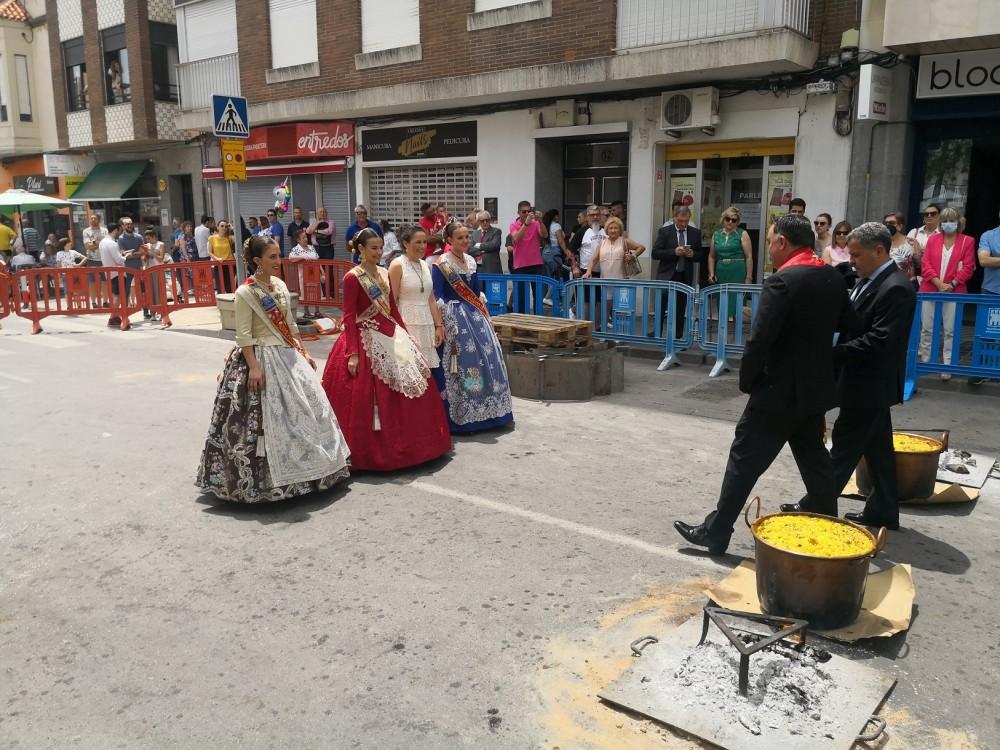 Abans del lliurament del plat més popular de les festes d'Almassora ha tingut lloc la mascletà disparada per la pirotècnia Baldayo’s al carrer sant Pere i la visita a la Residència Municipal de la Tercera Edat perquè els majors reben, com cada any, la seua ració d'arròs.