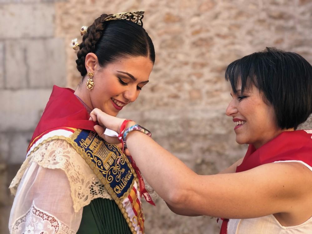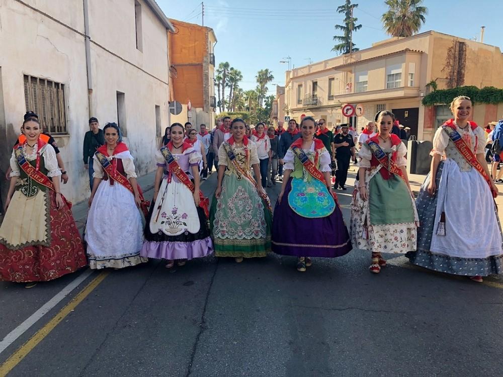 Per aquest motiu, els voluntaris de la Junta Local de Festes han repartit 9.500 ‘rollets’ d'anís a l'arribada de la comitiva al paratge, 500 unitats més que en anteriors ocasions, al costat de la tradicional copa de mistela, per a reposar forces. La reina de les festes, Nuria Alcalde Vedrí, i les dames Mar Rouco Cantavella i Núria Dealbert Lafuente, han sigut de les primeres, abillades amb la indumentària tradicional.