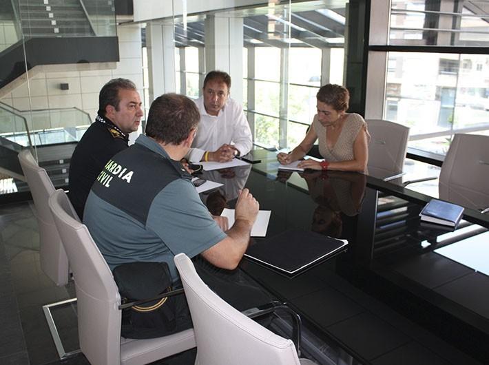 Policía Local y Guardia Civil expusieron los efectivos y medios con que cuentan durante todo el año, la distribución de los servicios y las competencias de cada Cuerpo en la vigilancia de la playa y de los accesos que conectan con el casco urbano. Tras estudiar las posibilidades de incrementar la coordinación, los participantes en la reunión acordaron extremar los esfuerzos para que no se repitan los asaltos a villas, apartamentos y alquerías una vez que sus propietarios regresen al casco urbano tras el fin de las vacaciones de verano.