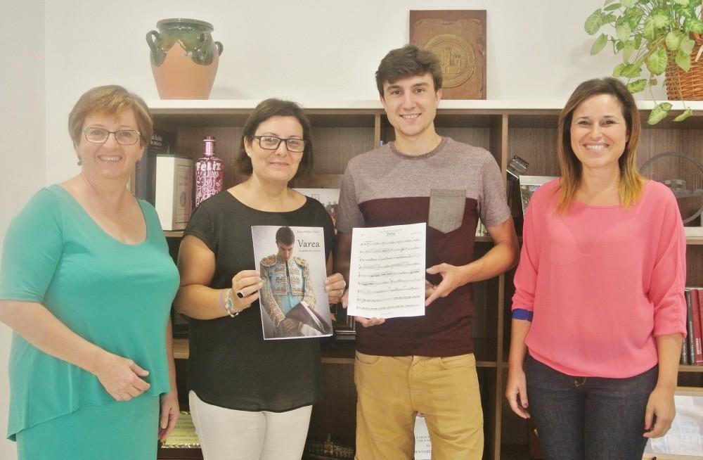 El torero de Almassora Jonathan Blázquez, Varea, ha recibido esta mañana de manos de la concejala de Cultura, Isladis Falcó, la partitura del pasodoble que lleva su nombre y que está compuesta por el maestro Borja Muñoz Abad. La Unión Instructivo Musical La Esmeralda estrenará la canción durante el concierto de Santa Cecilia, el próximo 19 de noviembre, fecha que coincide con el 23 cumpleaños del torero.