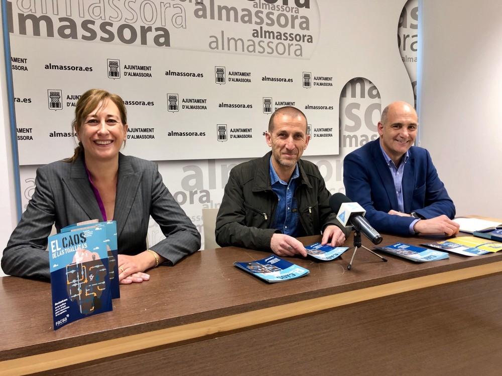 L'empresa Facsa, concessionària del servei de clavegueram i aigua potable d'Almassora, i el consistori han iniciat una campanya informativa per a atallar els emboces de la xarxa causats per l'acumulació de tovalloletes en les canonades de la xarxa pública. La responsable d'explotació en la localitat, Patricia Agrasar, i el regidor de Serveis Públics, Joan Antoni Trenco, han incidit junt al responsable de Tractament d’Aigües, Javier García,en les “greus conseqüències econòmiques i mediambientals” de llançar aquestes deixalles pel vàter.