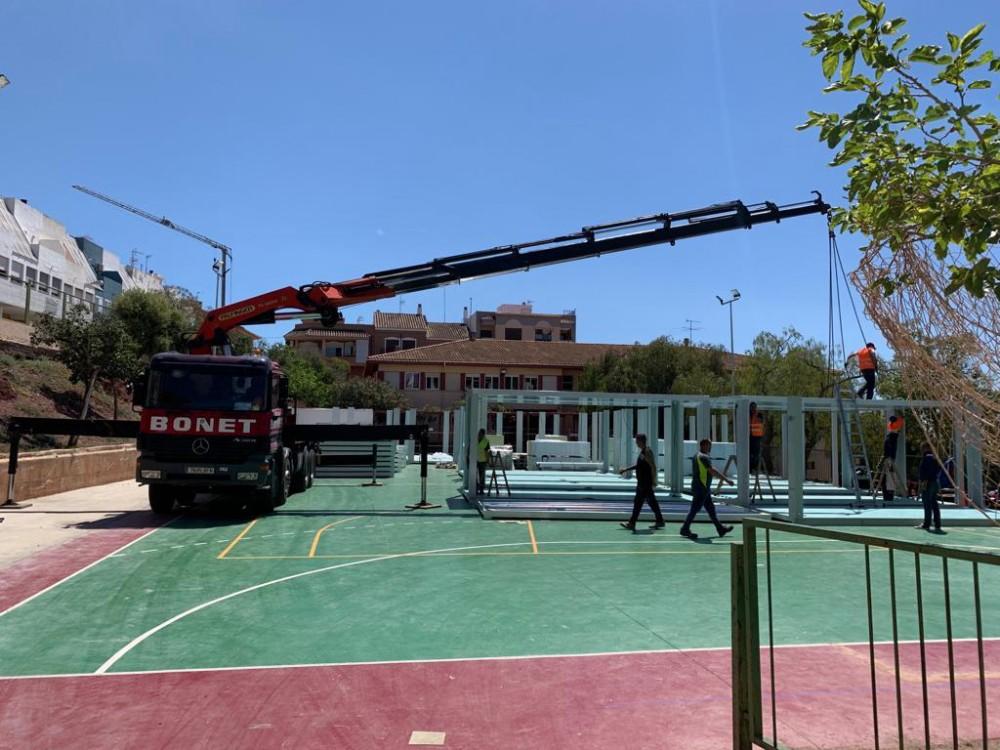 Ja ha començat al pati de "l'edifici de dalt" del CEIP Juan Carlos I d'Almenara la instal·lació de les aules prefabricades destinades a acollir a l'alumnat durant la realització de les obres de la segona fase del Pla Edificant en el centre. La intenció és que durant els pròxims dies es culmine el muntatge d'aquestes aules perquè en finalitzar el curs puga produir-se el trasllat de materials i deixar lliures els espais per a escometre les obres que començaran al llarg del mes de juliol en el centre. L'objectiu és aprofitar l'estiu per a iniciar les obres perquè aquestes afecten el menor temps possible a la comunitat escolar.