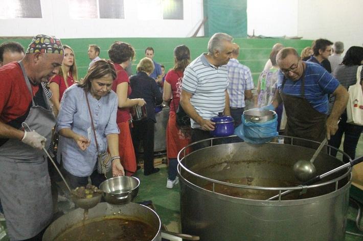 Ya son 29 años los que el prestigioso cocinero Alejandro Sánchez-Alcón se encarga de elaborar el popular guiso de la ‘caldereta de carn de bou’ que comenzó con apenas mil raciones y ahora ya se superan las 10.000. Para la elaboración del guiso se han empleado 2.200 kilos de carne de toro, junto a 1.100 kilos de patatas, 150 de cebolla y unos 60 kilos de zanahorias, champiñones, judías y guisantes. También se han utilizado 70 litros de vino y 10 de brandy, así como 30 kilos de sal, a lo que se une el agua, así como las diversas especias y aromáticas. Sánchez-Alcón ha utilizado para el guiso 8 calderos de 1000 raciones cada uno, y otros 16 de diversos tamaños.