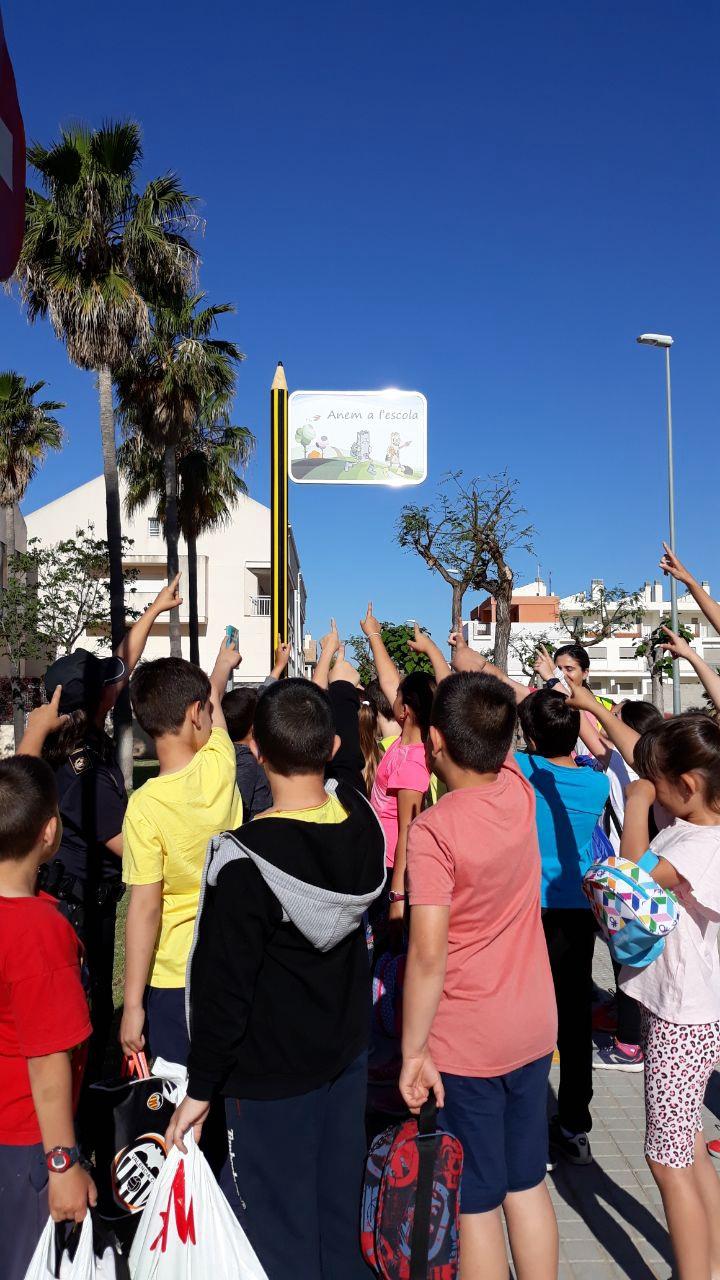 En aquest primer "camí segur al col·le" s'ha realitzat una senyalització indicativa del trajecte amb senyals en forma de llapis i marques viàries, que es veuen complementades amb un reforçament dels advertiments i senyalització en els punts més conflictius, com el cas de la Avinguda País Valencià. A més, al carrer Casablanca s'han instal·lat uns bolards perquè els vehicles estacionen més lluny de les cantonades que ho fan ara amb l'objectiu que es facilitar la visibilitat dels xiquets que vagen camí al col·legi. D'igual manera al carrer Isabel la Catòlica, també s'han instal·lat uns bolards perquè els cotxes no estacionen damunt de la vorera, amb l'objectiu que els xicotets no hagen de baixar d'aquesta.