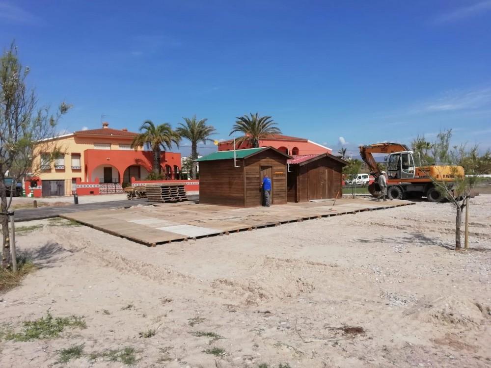 L'Ajuntament d'Almenara està muntant les habituals casetes de la posta sanitària de la platja en una nova ubicació, ja que després dels últims temporals no "hi havia el suficient espai de seguretat en el lloc habitual" segons ha explicat l'alcaldessa, Estíbaliz Pérez.