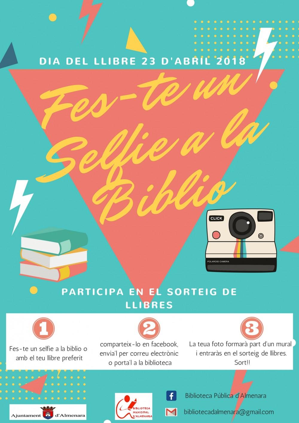 La Biblioteca Municipal Joan Fuster d'Almenara ha començat la campanya 'fes-te un 'selfie' en la Biblio' amb l'objectiu de potenciar la lectura i celebrar el dia del llibre el pròxim 23 d'abril. La campanya persegueix que es realitzen 'selfies' llegint, bé en la Biblioteca Municipal Joan Fuster o en qualsevol altre lloc, i es remeten a la mateixa per a participar en el sorteig d'un lot de llibres per cadascuna de les tres categories establides, la d'adults, juvenil o infantil.