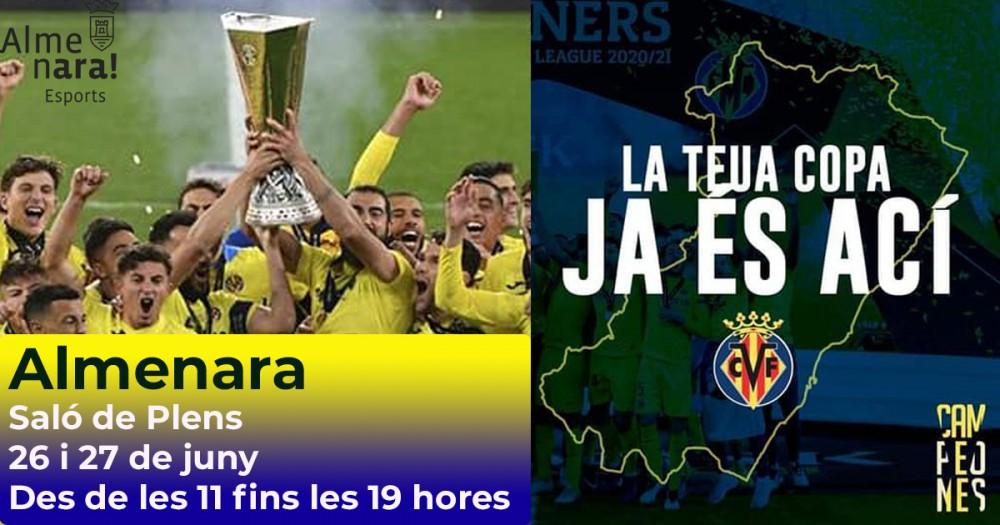 La copa de la UEFA Europa League conquistada recentment pel Villarreal C.F. estarà el pròxim cap de setmana a Almenara dins de la gira que està realitzant el club 'groguet' perquè els aficionats i aficionades puguen veure el trofeu.