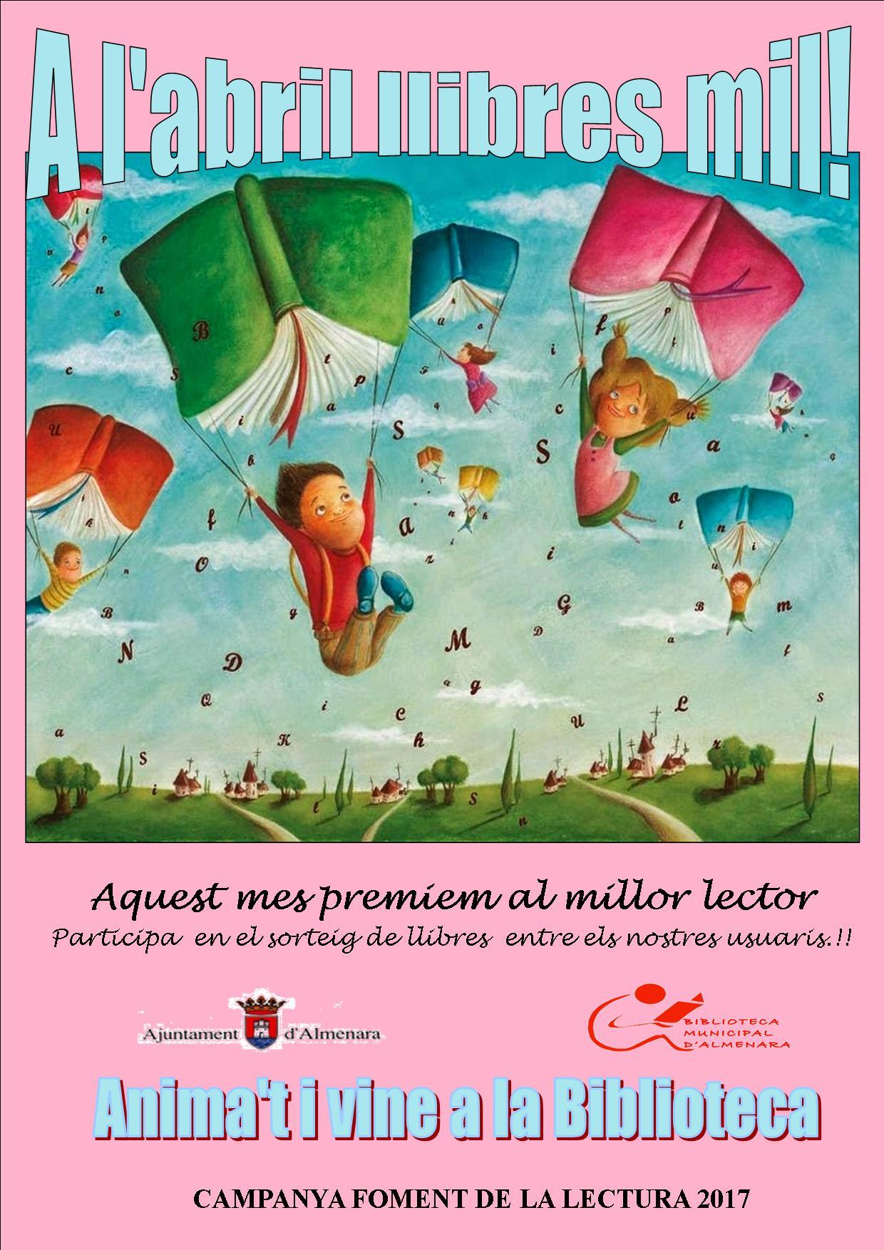 Amb el lema 'A l'abril, llibres mil' l'Ajuntament d'Almenara realitzarà una campanya durant el mes pròxim destinada al foment i l'hàbit de la lectura entre totes les edats. El primer tinent d'alcalde i regidor de Cultura, Francesc Bargay, ha destacat que en aquesta campanya en la qual participen tant la Biblioteca com el Casal Jove "cerquem potenciar la lectura així com la nostra biblioteca" pel que entre altres accions "anem a sortejar lots de llibres entre els lectors".