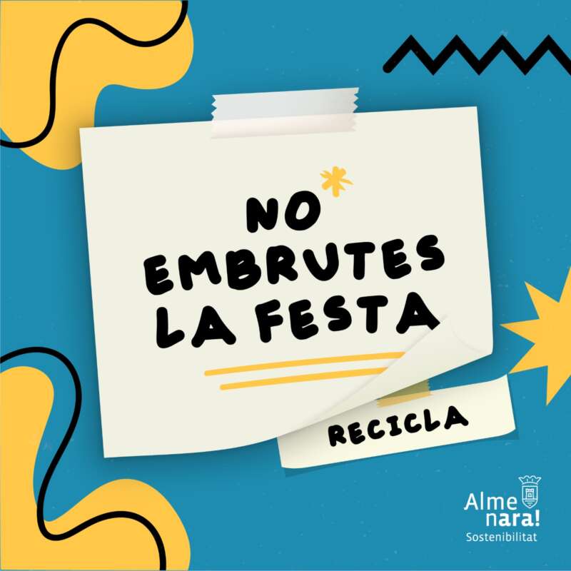 L'Ajuntament d'Almenara a través de l'àrea de Medi Ambient ha iniciat una campanya de conscienciació ciutadana perquè es fomente especialment el reciclatge i la neteja durant els propers dies festius. L'alcaldessa d'Almenara, Estíbaliz Pérez, ha destacat que "volem fomentar la reutilització del plàstic, el reciclatge dels diversos productes, la recollida del fem en un cert ordre i la neteja de les vies públiques, zones de casals i carpes".