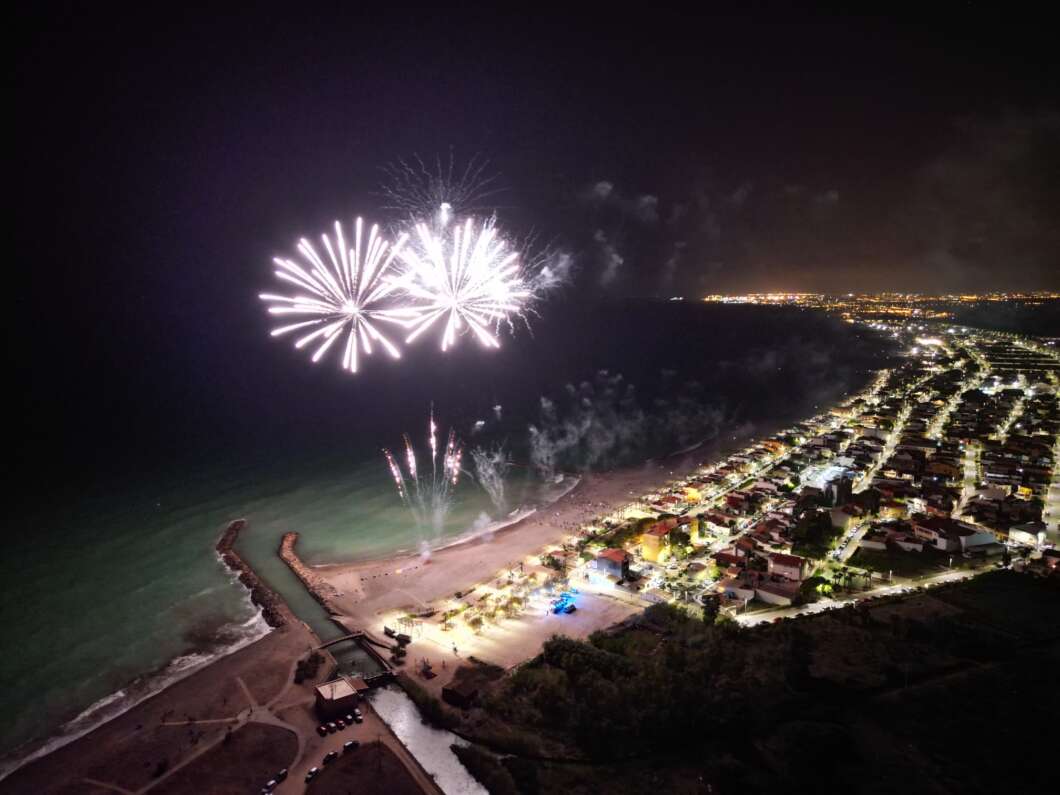 Un gran castillo de fuegos artificiales en el mar disparado por la pirotecnia Hermanos Caballer de Almenara puso el cierre al día grande de les Festes d'Estiu de la Platja Casablanca de Almenara que se están celebrando estos días en el núcleo marítimo.