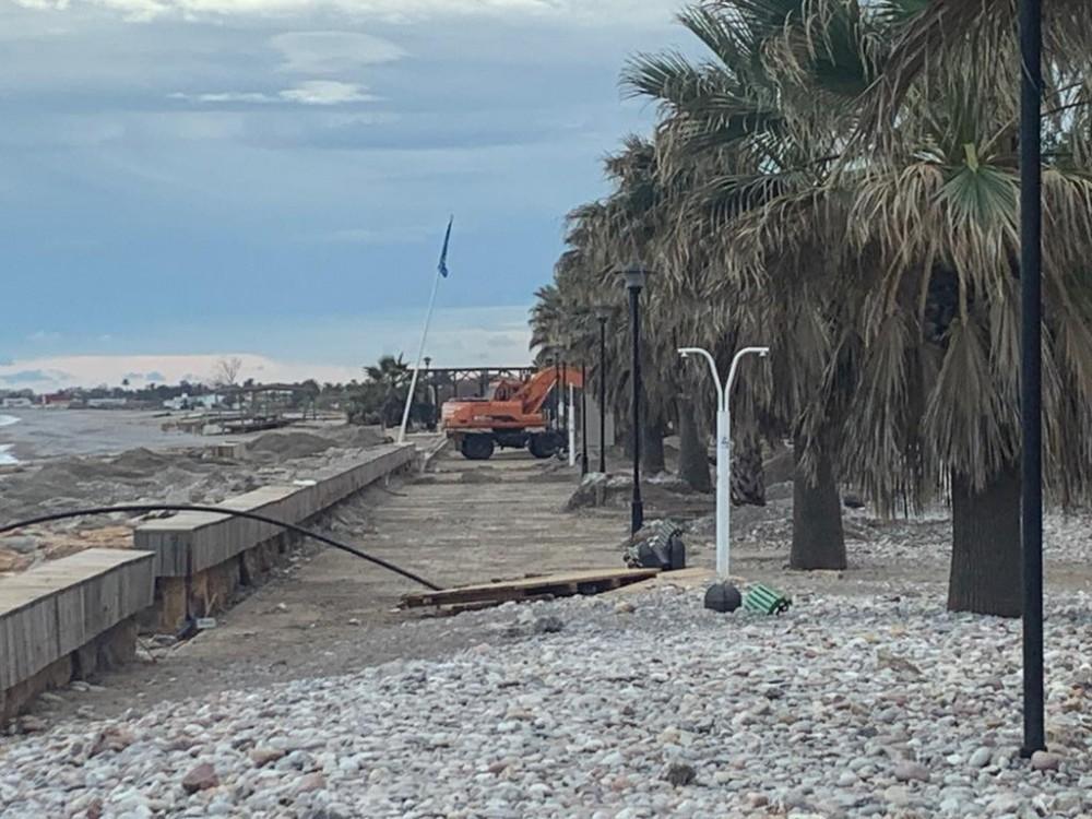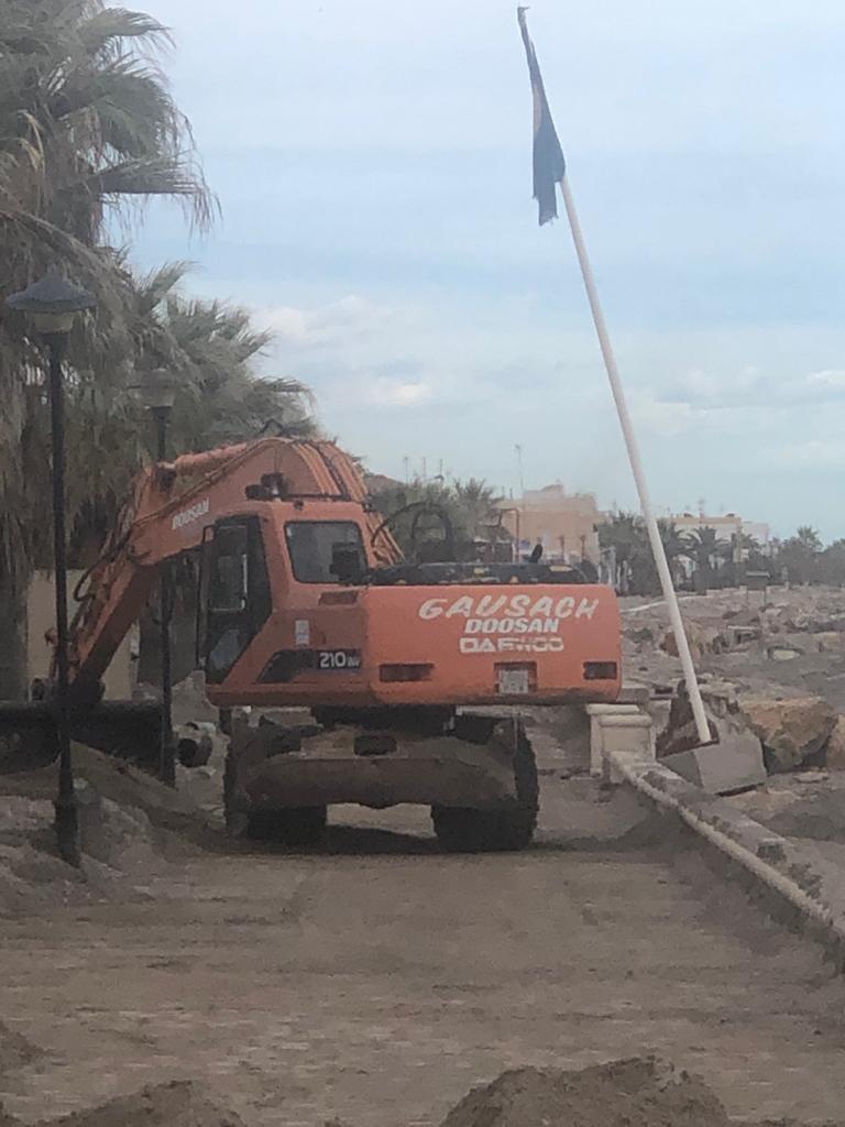Les màquines de Costes ja estan treballant a la platja Casablanca d'Almenara per a netejar, tant el passeig marítim com la zona litoral d'Almenara, després del temporal, retirant l'arena i grava acumulada, per a poder deixar la platja neta i valorar de manera definitiva les conseqüències de la borrasca Gloria i deixar-ho tot preparat per a les obres de recuperació del litoral i reparació del passeig marítim que siguen necessàries (tant la zona d'obra, com la de fusta).