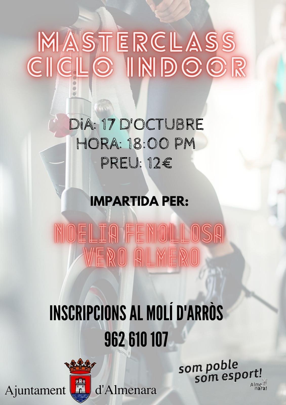 La regidoria d'Esports de l'Ajuntament d'Almenara ha programat per al dissabte 17 d'octubre a les sis de la vesprada una sessió especial, una màster-class de ciclo indoor (ciclisme de sala) impartida per Noelia Fenollosa i Vero Almero.