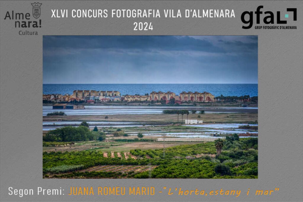 El primer premio, dotado con 250 euros, ha correspondido para Santos Moreno Villar con la instantánea titulada "Hora daurada a l'Estany d'Almenara". El segundo galardón, dotado con 100 euros ha sido para Juana Romeu Madrid con la fotografía titulada "L'horta, estany i mar". El tercer premio, dotado con 50 euros, es para Cristina Sánchez Moya por la instantánea titulada "Almenara 4".