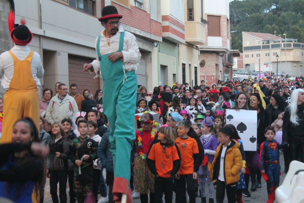 A partir de les 18:00 hores començarà la tradicional cercavila de disfresses acompanyades per la xaranga que recorrerà els carrers Major i Cisterna fins a arribar al Poliesportiu Municipal. En aquesta ocasió l'animació estarà a càrrec de Trébol Teatre amb l'espectacle itinerant 'Globos y Pompas'.