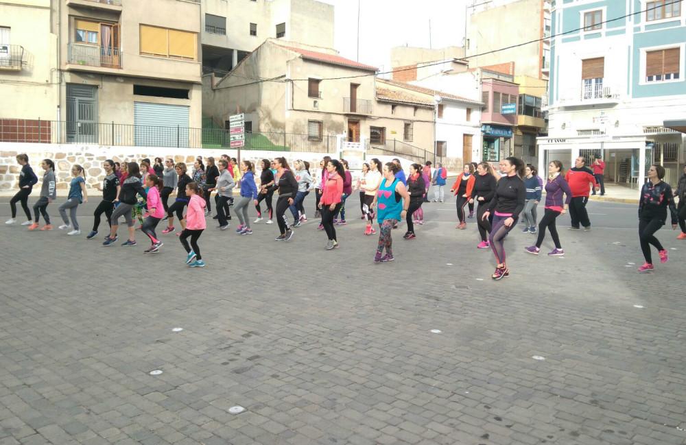 Prop d'un centenar de persones han participat este matí en la tradicional màster class de zumba d'hivern en la Plaça del Molí d'Almenara i que ha sigut impartida tant per Mireia García i Ángela Vives.