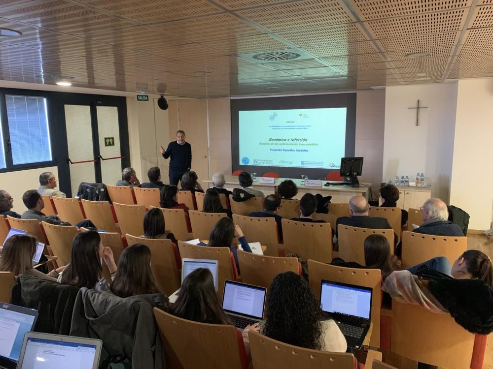 Los futuros médicos han asistido a una doble sesión en torno a la genética en las poblaciones y en el estudio de las enfermedades transmisibles impartidas por los doctores Conrado Martínez y Fernando González, respectivamente. El coloquio ha sido moderado por el doctor Ramón López, profesor de Genética y vicedecano de Medicina del CEU.