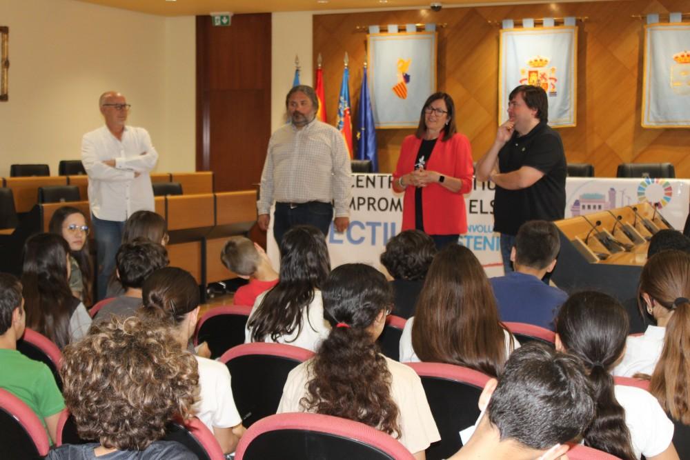 En la sala de plens de l'Ajuntament, l'alumnat ha comptat com a interlocutors, per a atendre i respondre les seues demandes, amb el regidor de Sostenibilitat Mediambiental, Bruno Arnandis, el d'Educació, J. Ramon Monferrer, el de Cultura, Vicent Granel, i l’edila d'Hisenda, Cristina Rius.