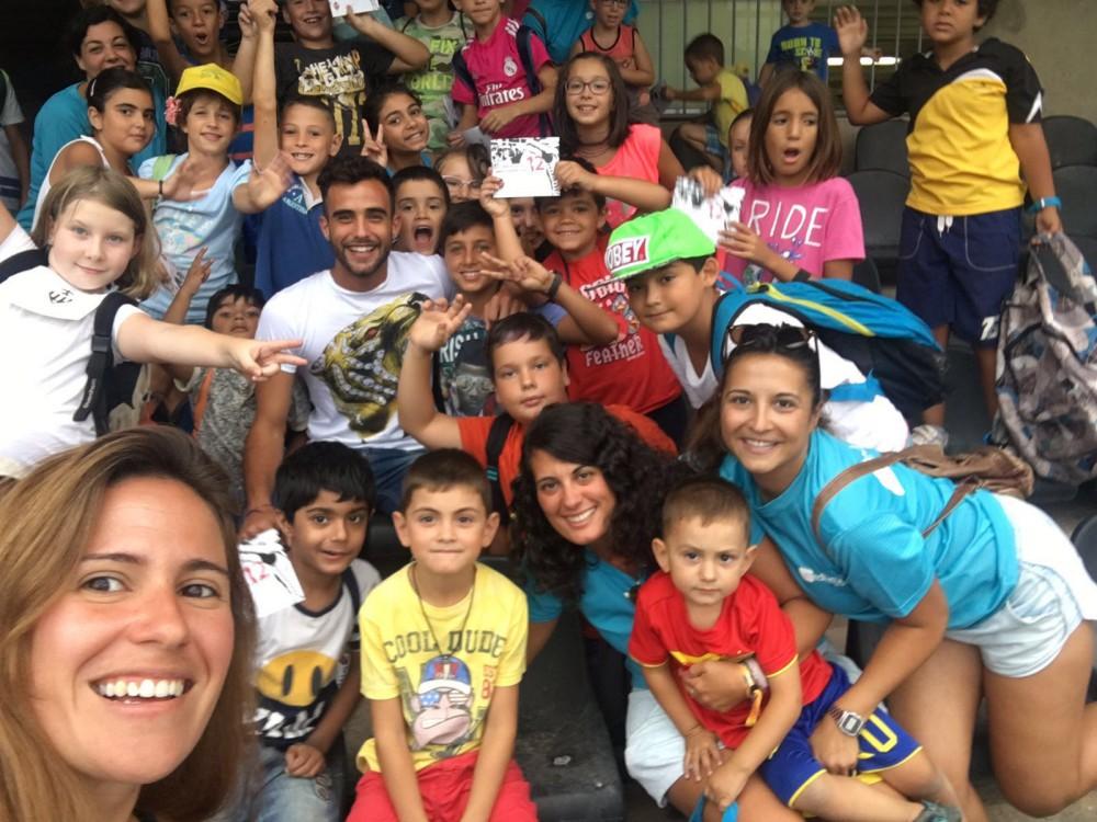 Un total de 72 chavales de la escuela Temps d'Esplai han estado esta mañana visitando el estadio de Castalia. Los chicos se han encontrado con la grata sorpresa de que uno de sus cicerones durante esta visita ha sido el guardameta del primer equipo Alejandro Zagalá, que se ha hecho fotos con los chavales y luego les ha firmado autógrafos.