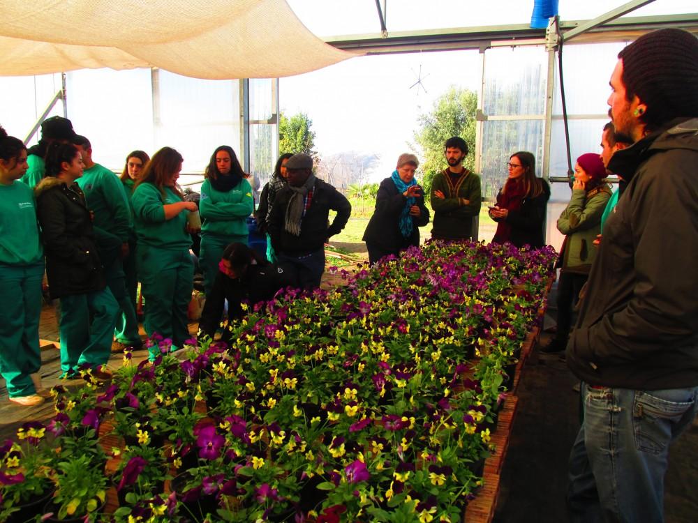 La visita ocupó toda una mañana y se desarrolló en dos partes: en la primera, el alumnado del centro ̶ chicos y chicas de entre 16 y 21 años ̶ explicó al estudiantado del máster los diferentes procesos, tareas y herramientas que requiere la agricultura ecológica, siguiendo principios fundamentales como, por ejemplo, la protección y el mantenimiento del ecosistema local; el respeto por el entorno; el buen aprovechamiento de los recursos naturales; la recuperación de semillas de la zona ̶ más adaptadas a las condiciones del territorio ̶ que se habían perdido con los años por no considerarse rentables económicamente; la protección de la biodiversidad; el cultivo de temporada y local; etc. En la segunda parte, se realizó un diálogo abierto entre ambos grupos en el que se abordaron diferentes puntos, desde técnicas concretas aplicadas a la agroecología hasta el uso de ésta para crear lazos sólidos de comunidad, cooperación, respeto y paz.