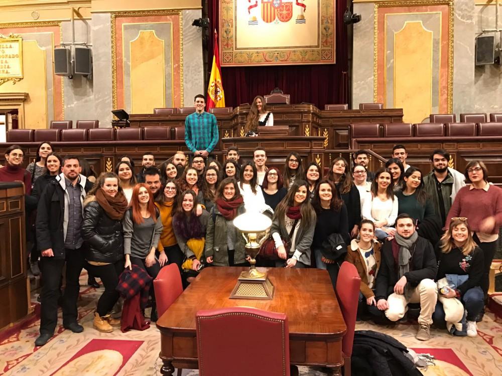 Alumnado de los Grados en Periodismo y Publicidad y Relaciones Públicas de la Universitat Jaume I de Castellón, acompañados por el vicedecano de Periodismo, Hugo Doménech y el profesor de Comunicación Política, Pablo López Rabadán, han realizado durante esta semana una visita académica al Congreso de los Diputados en Madrid.