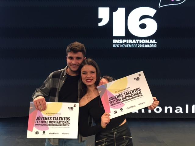 Los estudiantes del Grado de Publicidad y Relaciones Públicas de la Universitat Jaume I Marta Taboada y Guillem Boscà han conseguido el premio Jóvenes Talentos en la X Edición del Festival Inspirational del IAB Spain, la asociación de la publicidad y la comunicación digital en España, en el que han competido con estudiantado de toda el Estado. Además, el proyecto realizado por los estudiantes de la UJI Pablo Ibáñez y Manuel Pérez fue seleccionado como finalista en esta misma categoría.