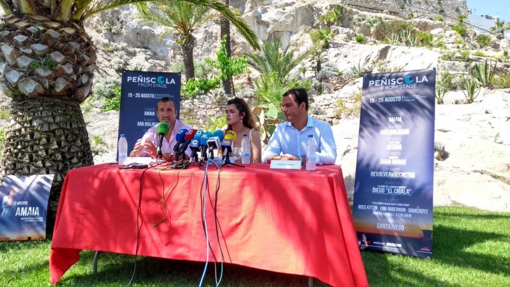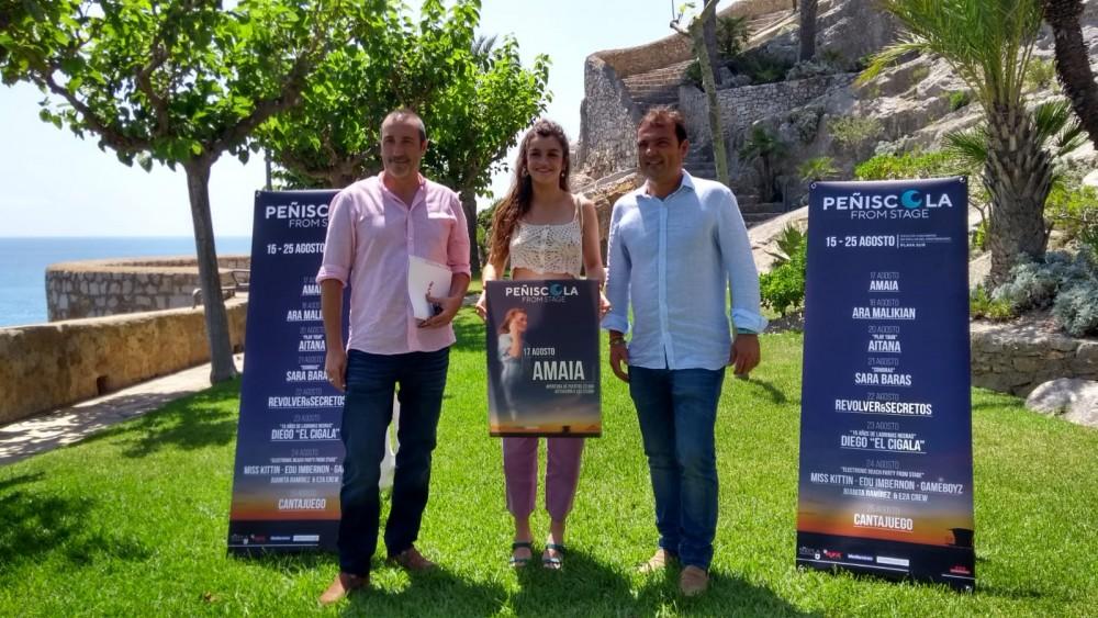 El Festival Peñíscola From Stage se estrena a lo grande. La cita, en su primera edición, arranca el 17 de agosto con la actuación de Amaia, la cantante que pasó por OT y Eurovisión y que llega a la Ciudad del Mar para darlo todo en un "concierto muy especial". Lo ha dicho la propia artista esta mañana en los Jardines del castillo del Papa Luna en la presentación del Peñíscola From Stage, acompañada por el director del festival, Héctor Olaria; y el alcalde de Peñiscola, Andrés Martínez, donde ha recordado "la nostalgia de los veranos pasados en el apartamento familiar" y ha puesto el acento en el eclecticismo del ciclo, "muy bien pensado para todos los públicos".