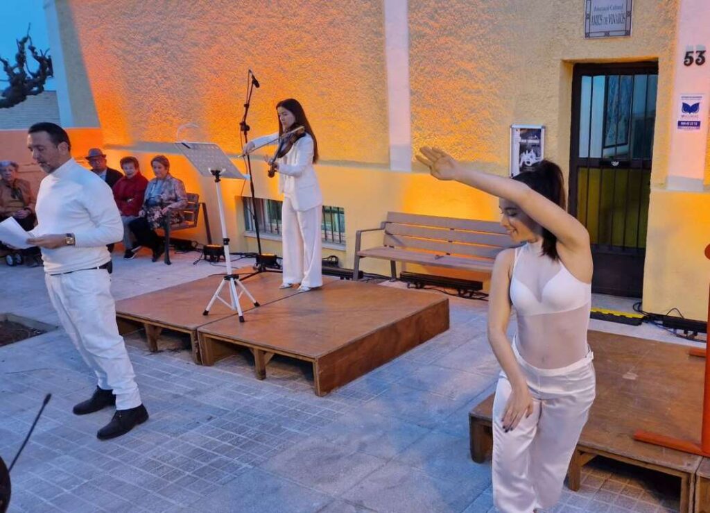El acto inaugural lo abrió Puro Teatro, despatx d'arts escèniques, con Toni Guillot que puso voz, junto a Paula López y Elisa Sanz, que en su movimiento y violín plasmaron la interacción de la obra escultórica de Córdoba. Una actuación que trasladó al proceso creador de las ‘Esculturas para Crecer ‘de Córdoba, a través del poemario en prosa de Ted Hugues ‘De cómo la ballena se convirtió en ballena y otras fábulas’ y la pieza musical perteneciente a ‘El carnaval de los animales’ de Camille Saint-Saëns.