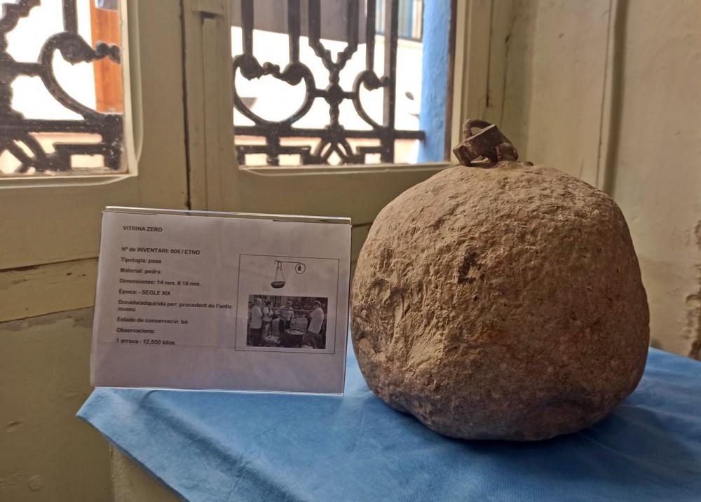 Actualmente se expone una pesa de piedra del siglo XIX de una arroba
