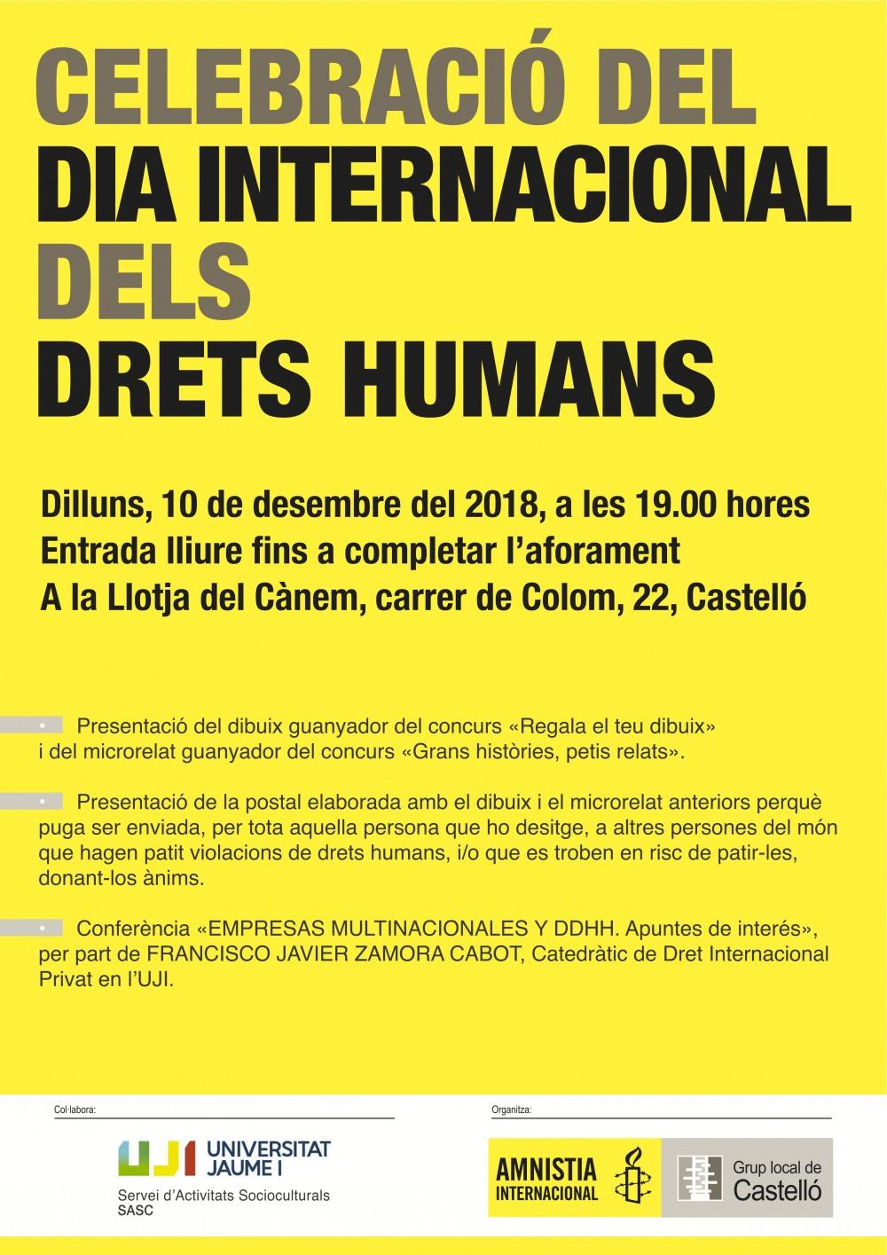 El Grup Local de Castelló d'Amnistia Internacional ho commemora, com aquests darrers anys, amb un acte en la Llotja del Cànem, carrer de Colom, 22, que enguany constarà dels següents apartats: