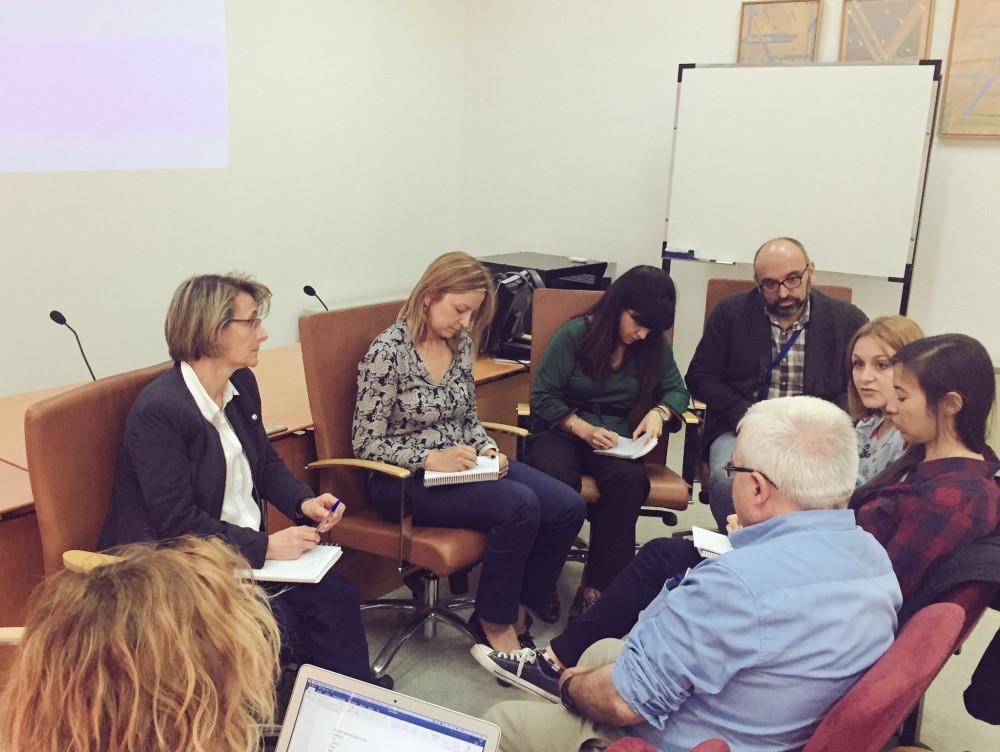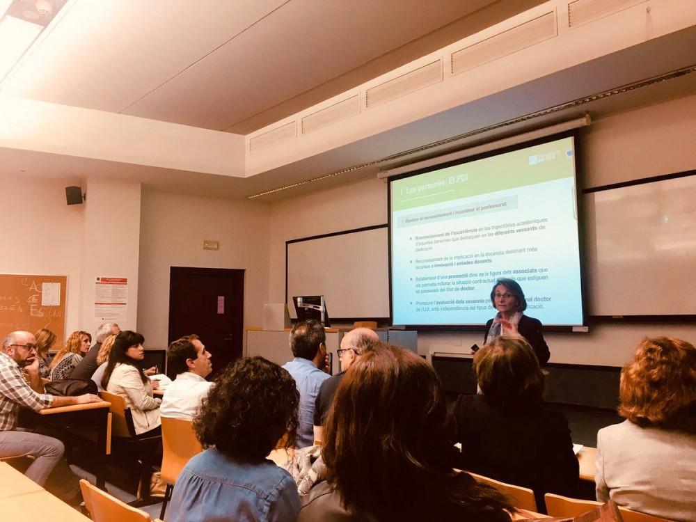 La futura rectora ha seguido hoy con su Agenda de campaña con una visita de delegados de la Facultad de Ciencias Jurídicas y Económicas y esta tarde ha mantenido una asamblea con el PDI de la Facultad de Ciencias Humanas y Sociales.