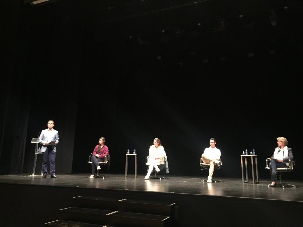 La candidata a rectora de la Universitat Jaume I, Eva Alcón, y los representantes de las candidaturas del estudiantado al Claustro Paula Barba, de Plataforma Estudiantil; Laura Alcaide, de Saó, y Jaime García Vivas, de Som Universitat/Somos Universidad han presentado las propuestas de sus programas electorales en un debate que se ha celebrado esta mañana en el Paraninfo de la Universitat Jaume I. El debate se ha retransmitido en directo por redes sociales y la comunidad universitaria ha podido participar.