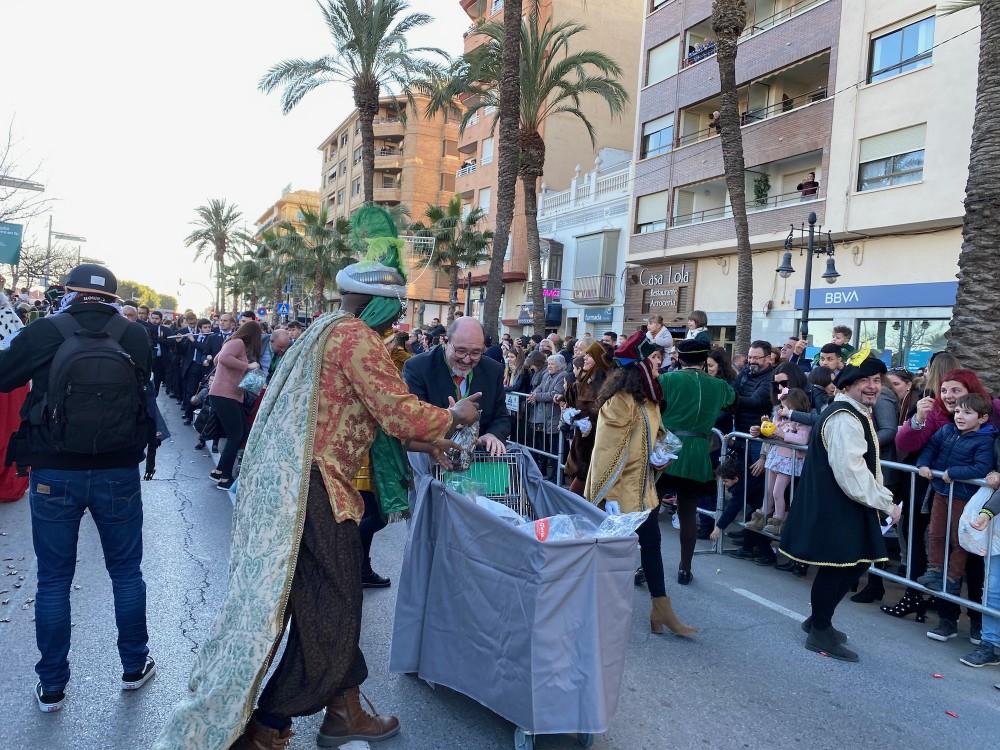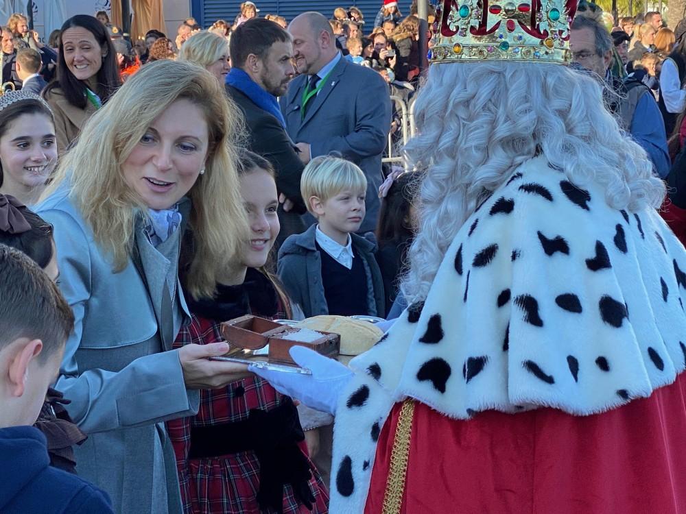 La alcaldesa de Castellón y las reinas y damas de la ciudad acogían a los reyes en la Plaza del Mar, donde los Magos recibieron el pan y la sal como señal de bienvenida a Castellón