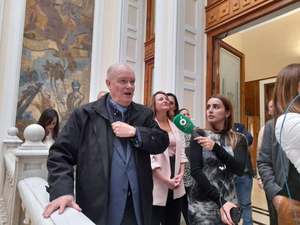 El cronista oficial de Castelló, Antonio José Gascó, ha ofrecido esta mañana una visita guiada por el ayuntamiento para explicar los ‘tesoros’ que guarda el consistorio castellonense. Gascó ha recorrido junto con la alcaldesa, Begoña Carrasco, varios concejales del ayuntamiento y representantes de los medios de comunicación las principales dependencias del edificio consistorial explicando cada uno de los murales que cubren varias zonas del mismo destacando que “el ayuntamiento tiene el privilegio de tener lo mejor de Porcar” en referencia al pintor castellonense Juan Bautista Porcar, el pintor de mayor proyección nacional e internacional de su tiempo.