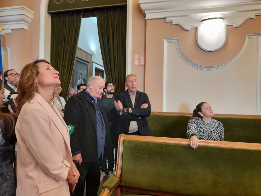 Durante el recorrido que ha realizado Antonio Gascó, la alcaldesa ha aprovechado para interesarse por varias pinturas que hay en la antesala de alcaldía y en el salón de plenos y conocer más en profundidad cada una de ellas. Gascó no se ha dejado un detalle en el recorrido, desde las pinturas, a los murales y las vidrieras.