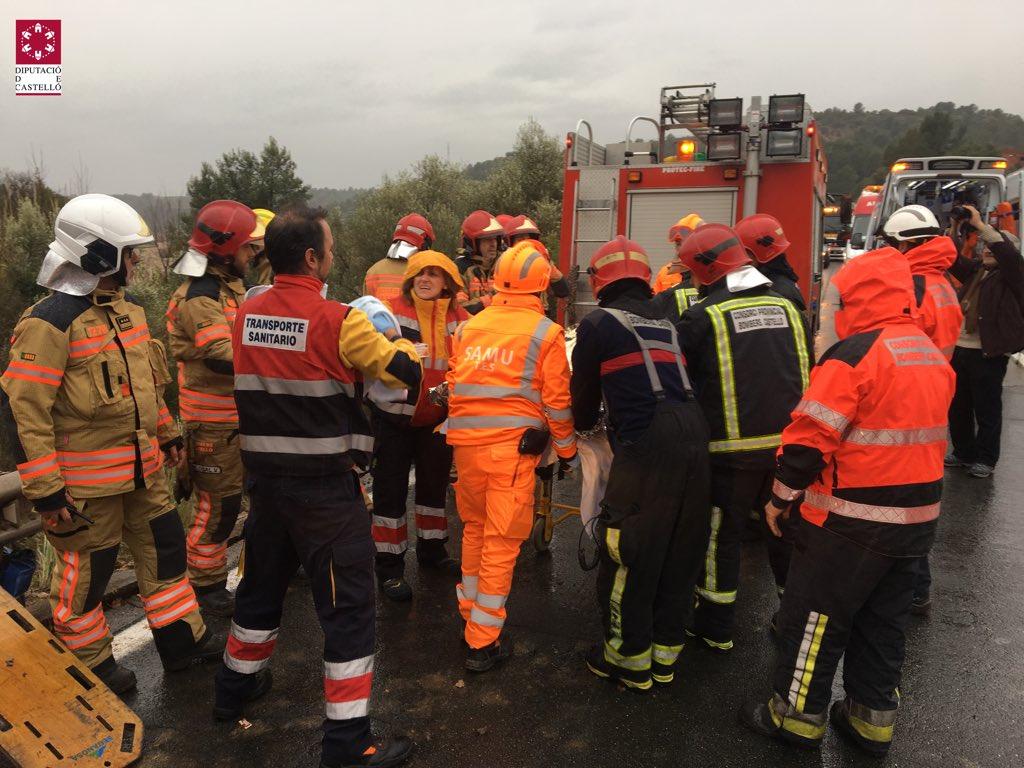 Este mediodía de intensas lluvias y temporal de frío en la provincia, se ha producido un aparatoso accidente en la carretera de Ribesalbes, que conecta Castellón y Onda. En un principio, ha sido el Consorcio de Bomberos de la Diputación los que se han hecho cargo de este servicio, en el que las ocupants del vehículo se habían quedado atrapada dentro del mismo.