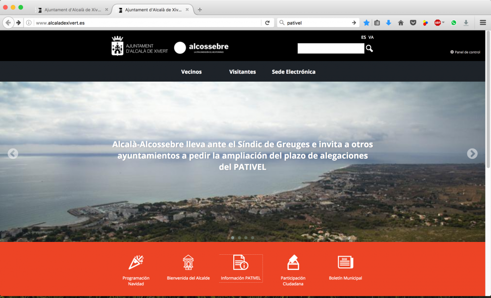 Con el fin de facilitar al máximo la presentación de alegaciones a los numerosos vecinos afectados por el desarrollo del Plan de Acción Territorial de Infraestructura Verde del Litoral-Pativel, la web municipal incorpora desde hoy un apartado específico en el que se especifica toda la información sobre qué es y cómo afecta al municipio el desarrollo del Pativel. En la sección, que aparece visible desde el menú principal de la web, podrán descargarse tres modelos de alegaciones ya redactadas a las que podrán sumarse tanto propietarios afectados como vecinos interesados en alegar a los puntos del plan con los que no están de acuerdo.