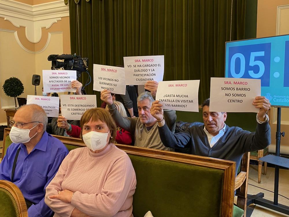 Por otra parte, tampoco faltaba público en la sala, entre ellos, los vecinos de la avenida de Lidón, que protestaban por las obras; y los de la Marjalería, más que reivindicativos con la necesidad de que se solucionen las inundaciones de la zona y la proliferación de mosquitos.