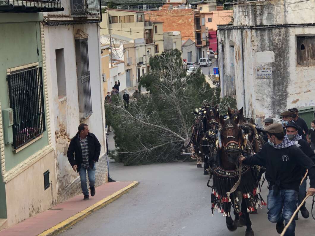 L'entrada del pi, tirada per cavalls, tindrà lloc a les 12 del migdia i discorrerà pels carrers Estació, Basses, Les Parres, Molí, Ermita, Pedrera, Alcalá i finalment faran entrada els cavalls a la plaça Espanya, lloc en el qual es planta la foguera de Sant Antoni. Des de l´Ajuntament es demana que per favor no aparquen vehicles en aquests carrers.