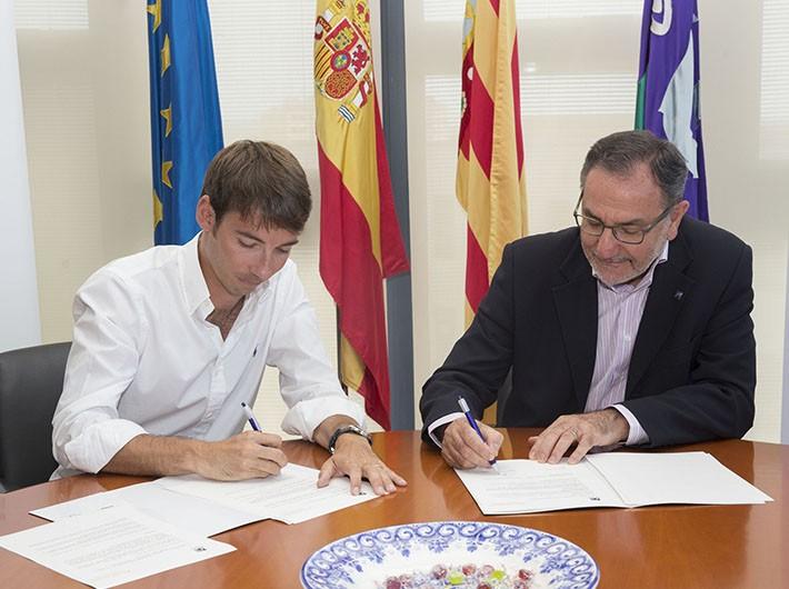 El rector de la Universitat Jaume I, Vicent Climent, y el fundador y gerente de la marca ArchiCeramic Architectural Lab for Ceramic, Javier Guallar, han firmado un convenio de colaboración empresarial en el marco del proyecto éBRICKhouse 2016 al que también han asistido el vicerrector de Economía y PAS, Miguel Ángel Moliner, y la coordinadora del proyecto éBRICKhouse y profesora de la UJI Teresa Gallego.