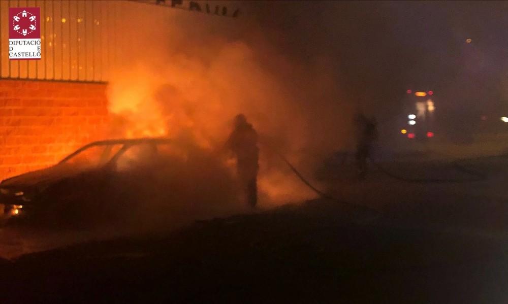 Bomberos del parque de la Plana Baixa y del Parque Voluntario de Espadà Millars han intervenido en la extinción del fuego que ha calcinado un vehículo aparcado en un polígono industrial de la localidad de Onda.