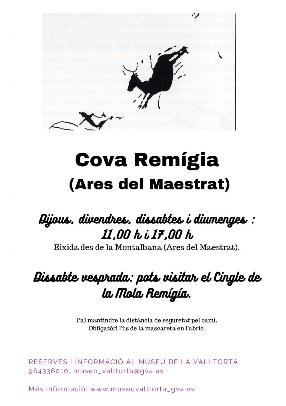 Vecinos, vecinas y visitantes podrán disfrutar este fin de semana con las visitas guiadas a la Cova Remígia y al Cingle de la Mola Remigía. Así, durante este mes de agosto, de jueves a domingo a las 10h y a las 17h se pueden conocer las pinturas rupestres de la Cova Remígia. Además, los sábados por la tarde se puede visitar el Cingle de la Mola Remígia.