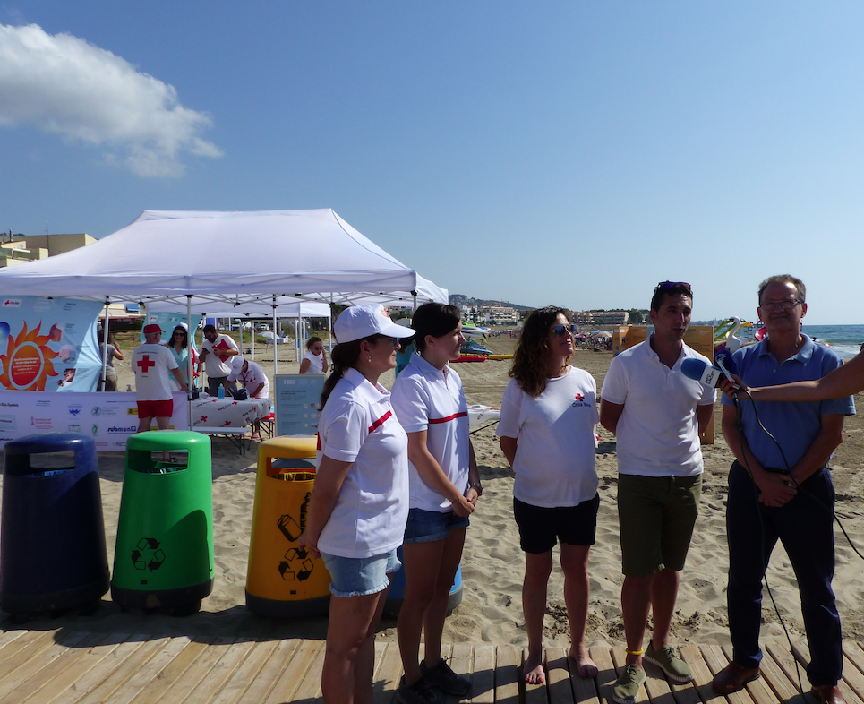 La labor de concienciacion de Cruz Roja a pie de playa se complementará con la distribución a los bañistas participantes de ceniceros, abanicos, fruta, crema solares, entre otros.