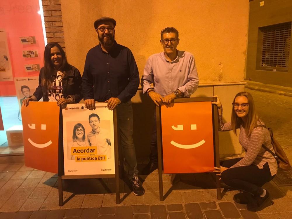 L’inici simbòlic de la campanya electoral que s'ha fet des del col·lectiu de Compromís per Vila-real. Els regidors del Grup Municipal a l'Ajuntament, Josep Pasqual Sancho, Santi Cortells i Maria Fajardo, han compartit la pegada simbòlica de cartells juntament amb altres companys i membres del col·lectiu i també amb representants com la portaveu i síndica adjunta a les Corts, Mònica Àlvaro.
