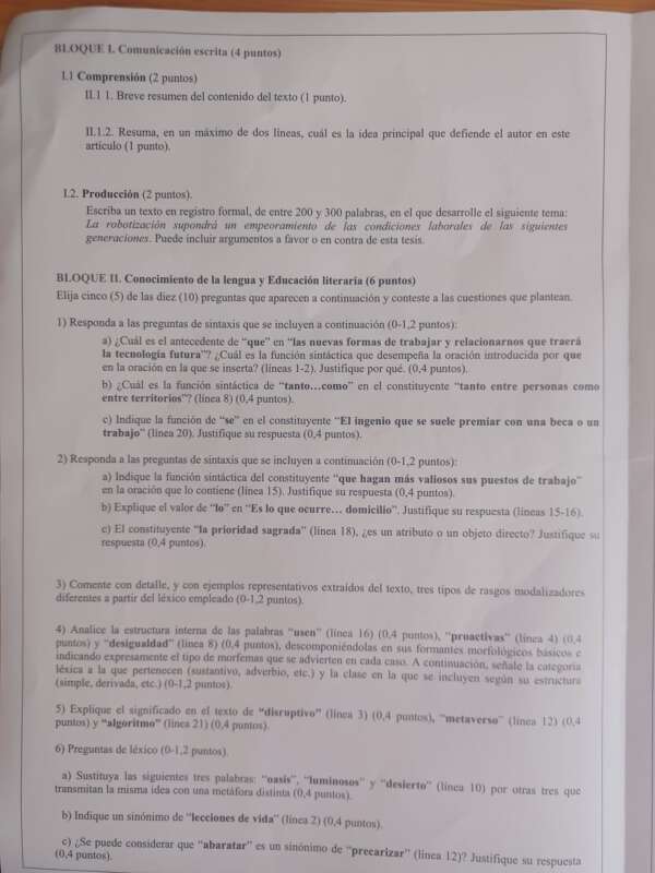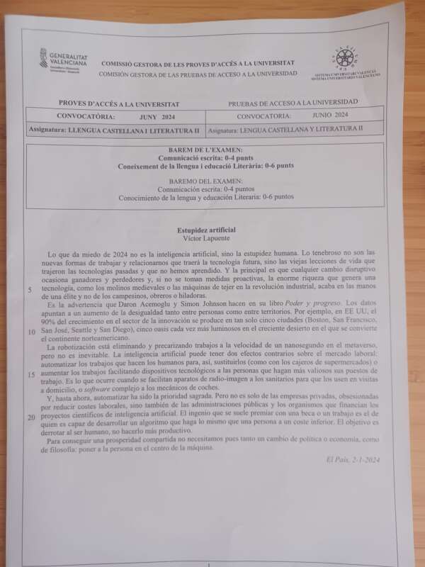 La selectividad ha arrancado con la fase obligatoria, en concreto con la asignatura de Castellano que ha citado a 2.476 estudiantes. La inteligencia artificial se ha colado en esta primera prueba con un comentario de texto titulado ‘Estupidez artificial’, del columnista de ‘El País’ Víctor Puente.