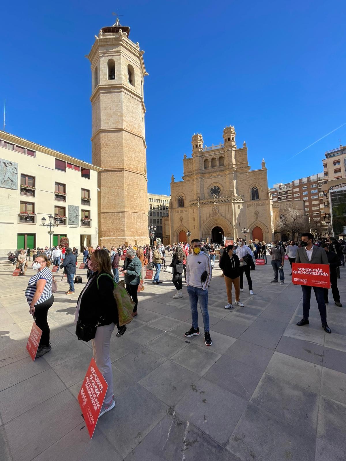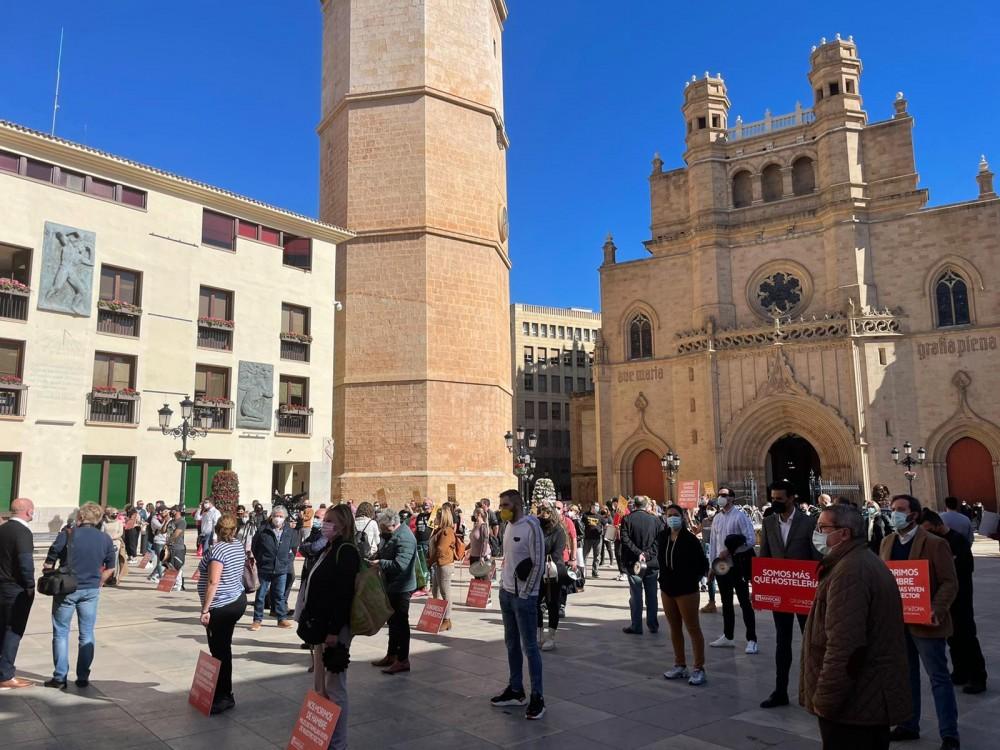 Ante las puertas del Ayuntamiento de Castelló en la plaza Mayor, los hosteleros han leído su manifiesto: