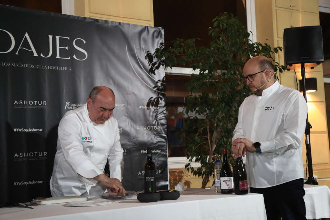 La velada ha estado conducida por Carmen Pastor y Yolanda González, representantes de ASHOTUR, y ha supuesto el broche de oro a la última campaña de la asociación, #MaestrosDeSala, la cual ha visibilizado la labor del personal de sala de restaurantes y bares durante este verano. ‘Maridajes’ ha contado con una magnífica demostración en directo protagonizada por Miguel Barrera, estrella Michelín y chef de Cal Paradís y Juan Antonio Zafra, jefe de sala y sumiller del Restaurante El Pairal.