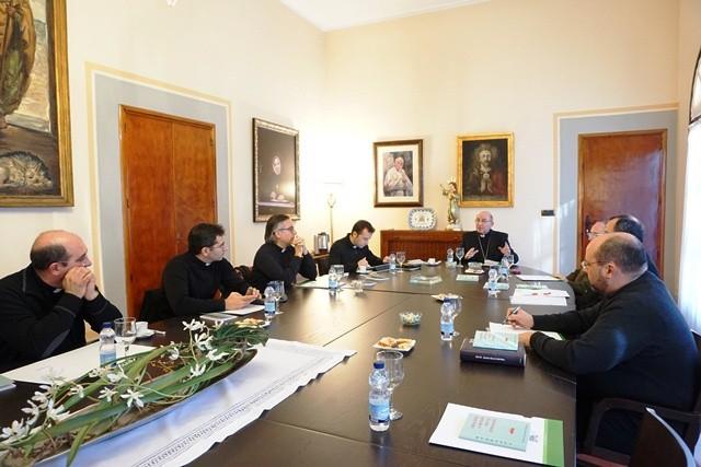 Mons. López Llorente ha reunido al equipo que organizará el Año propedéutico en el que se discernirán los candidatos a comenzar la formación para el diaconado permanente en la Diócesis. Estaban presentes los párrocos de Benasal, Torreblanca, San Miguel de Castellón y Santa Sofía de Vila-real que aportan cuatro aspirantes: dos hombres casados, un viudo y un soltero.