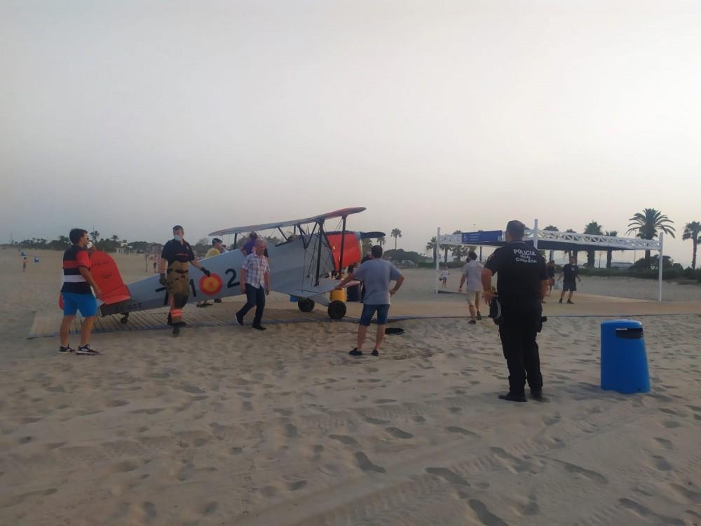 Una avioneta privada se ve obligada realizar un aterrizaje forzoso en la playa del Gurugú de Castellón