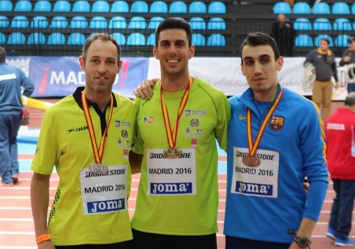 Las medallas de bronce fueron para Daniel Andújar en unos 800 dominados por el exatleta del Playas Kevin López y donde el atleta del Playas logró atacar en el momento oportuno para vencer a su compañero Diego Cabello que tuvo también una gran actuación y más teniendo en cuenta que no es un especialista en esta prueba sino en 400 vallas, disciplina que por razones obvias no se programa en pista cubierta.